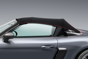 A 718 Spyder RS kézzel működtethető, egyrétegű, különösen könnyű vászontetővel rendelkezik. A kialakítás lenyűgözően kompakt méretű, a napvitorlából és az terelőből áll. Mindkettő levehető és az autóban tárolható. A napvitorla önmagában is használható, hasonlóan a vitorlások ’Bimini topjához’, megvédve a vezetőt és az utast a közvetlen napsugárzástól. Ekkor az utastér oldalról és hátulról nyitott marad. A terelővel együtt a megoldás teljes értékű tetőt biztosít, amely az oldalablakok felemelésével hatásos védelmet biztosít az esővel szemben. A tető a mechanikus részekkel együtt mindössze 18,3 kilogrammot nyom, ami 7,6 kilóval kevesebb, mint a 718 Spyder megoldása és 16,5 kilóval kevesebb, mint a 718 Boxster teteje. Ráadásul, ha további 8 kilogrammot szeretnénk faragni a tömegből, nyugodtan otthon hagyhatjuk a tetőt.