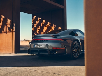 A Turbo modellekre jellemző módon az új 911 Turbo S látványosan szélesebb karosszériával és nyomtávval rendelkezik, mint a Carrera modellek, valamint hátsó oldalsó légbeömlőkkel is ellátták. Az átdolgozott hátsó lökhárítón feltűnő szellőzőnyílások tovább hangsúlyozzák a szélességet. A titán kipufogórendszer csövei a Turbo jellegzetes, újraértelmezett formájában készültek, és a hátsó lámpacsík feletti dinamikus gyöngyház struktúra is kiemeli a Turbo S vezető szerepét a sorozatban. Opcionálisan ovális titán kipufogóvégek is rendelhetők különleges felülettel. Összességében az autó exkluzív megjelenése egyértelműen megkülönbözteti a Turbo S-t a többi 911 modelltől.