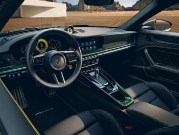 A Turbonite szín a belső térben is hangsúlyos szerepet kap. Megjelenik az ajtópaneleken, a kormányon, a műszerfalon és a középkonzol körüli kereteken, a díszvarrásokon, a Sport Chrono stopperórán és a műszeregységen. A biztonsági övek és a középkonzol több gombja is ebben a színben készült a Porsche dizájnerei által. Először szerepelnek a belső térben karbonszerkezetű díszlécek neodímium betéttel, valamint mikroszálas, perforált tetőkárpit fekete alappal.