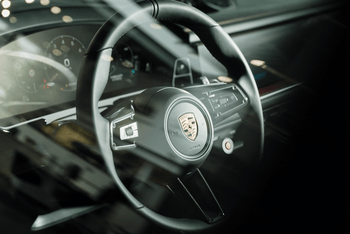 - Dombornyomott Porsche pajzs a középkonzol könyöklőin