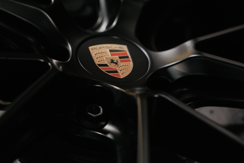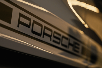 - Oldalsó 'PORSCHE' logó fekete színben